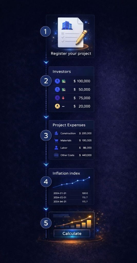 Instead of forcing complex, changing investments into rigid structures, the system creates a living financial model — one that evolves with the project and provides accurate, transparent, and fair ownership at every stage.